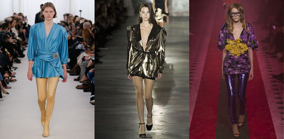 80's excess was writ large this season, quite literally in the oversized silhouette that came to define many collections. Balenciaga’sDemna Gvasalia inserted whalebone rods across the shoulders of coats and jackets to create his hulking power shoulders, but it was the Joan Collins-style tops secured with vintage brooches and paired with Spandex leggings that made the biggest impression. Likewise at Saint Laurent, Anthony Vaccarello imagined young girls going through their mothers’ old YSL and pilfering the bits they liked: velvet devoré draped and sweetheart neckline mini dresses, cropped smoking jackets and liquid gold lamé numbers. Gucci’s 80's looks were more Princess Diana-oriented, while other designers such as Lorenzo Serafini at Philosophy and Isabel Marant merely borrowed elements: a Siouxsie Sioux belt here, a puffball sleeve there. Combine that with slogan T-shirts at Dior, vintage neon surfing sweaters at Alexander Wang and Debbie Gibson earrings just about everywhere, and we’re facing a full-on revival.