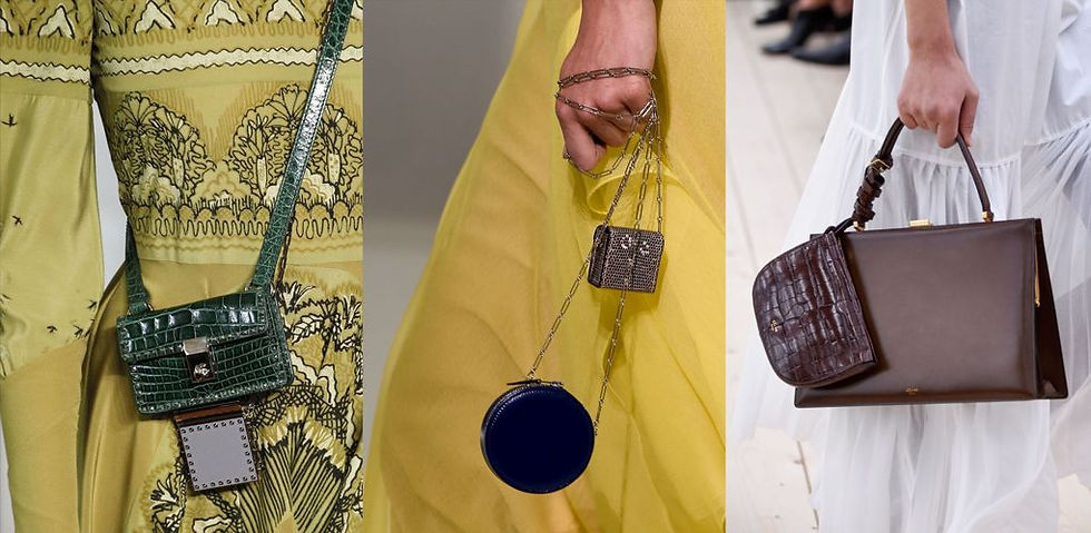 Bags are tiny and multifarious for spring: just big enough for a lipstick at Valentino and worn slung across the body in twos or threes on gold chains; big enough to handle some wallet shrapnel at Hermès; comprising tiny pouches attached to the vintage snap-fastened frame bags at Céline; and attached to gold bracelet bangles at Chloé. Only one took the trend to its logical conclusion, however: Louis Vuitton turned its Petite Malle into an iPhone case.
